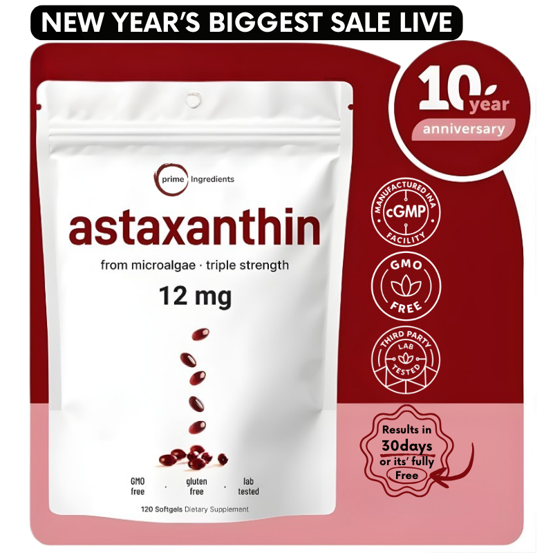 12 mg natural-source astaxanthin is the clinical sweet spot tested for skin elasticity, hydration, and UV protection.